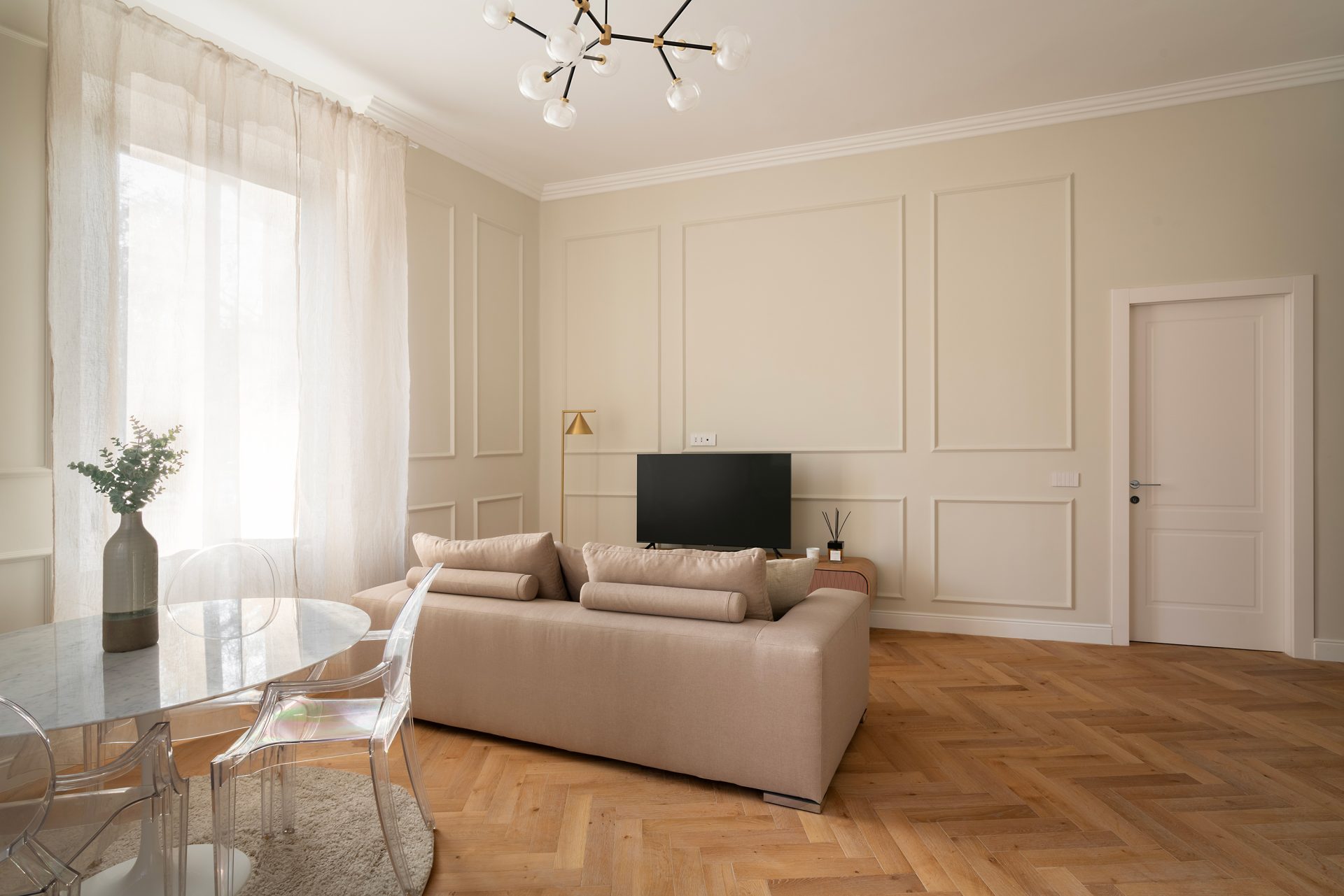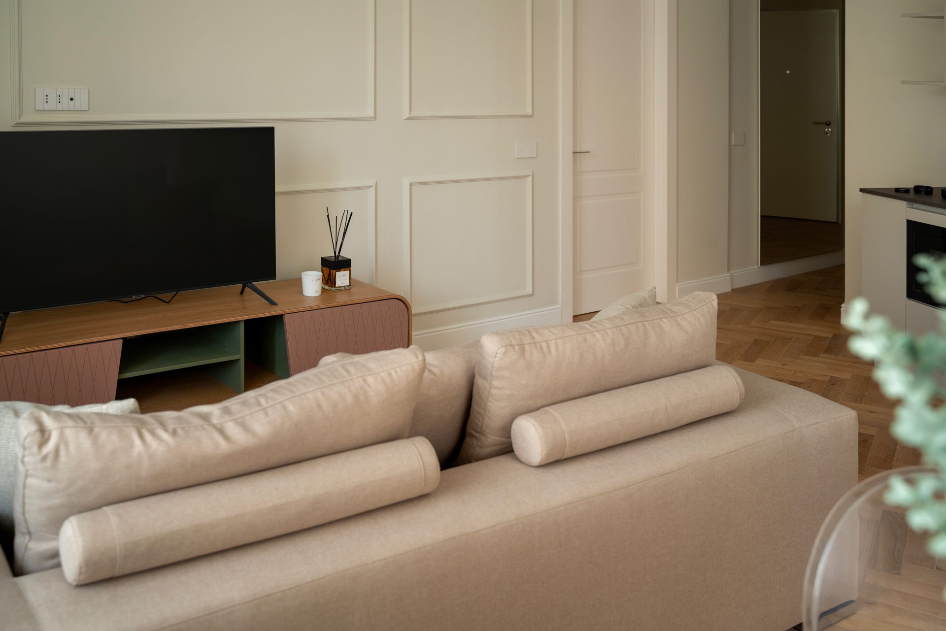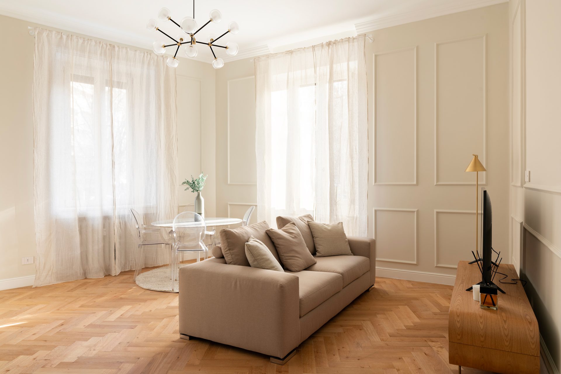 Santa Tecla Living vi propone, per il vostro alloggio nella città di Milano, questo appartamento di nuova costruzione, appena ristrutturato, in via Emanuele Filiberto 14, a soli 10 minuti a piedi da City Life. Dispone di una camera da letto, grande e luminosissimo soggiorno con cucina a vista, equipaggiata con elettrodomestici di alta gamma, e un bagno con box doccia. Al piano inferiore una grande zona living con divano letto ed un letto aggiuntivo e un secondo bagno.
