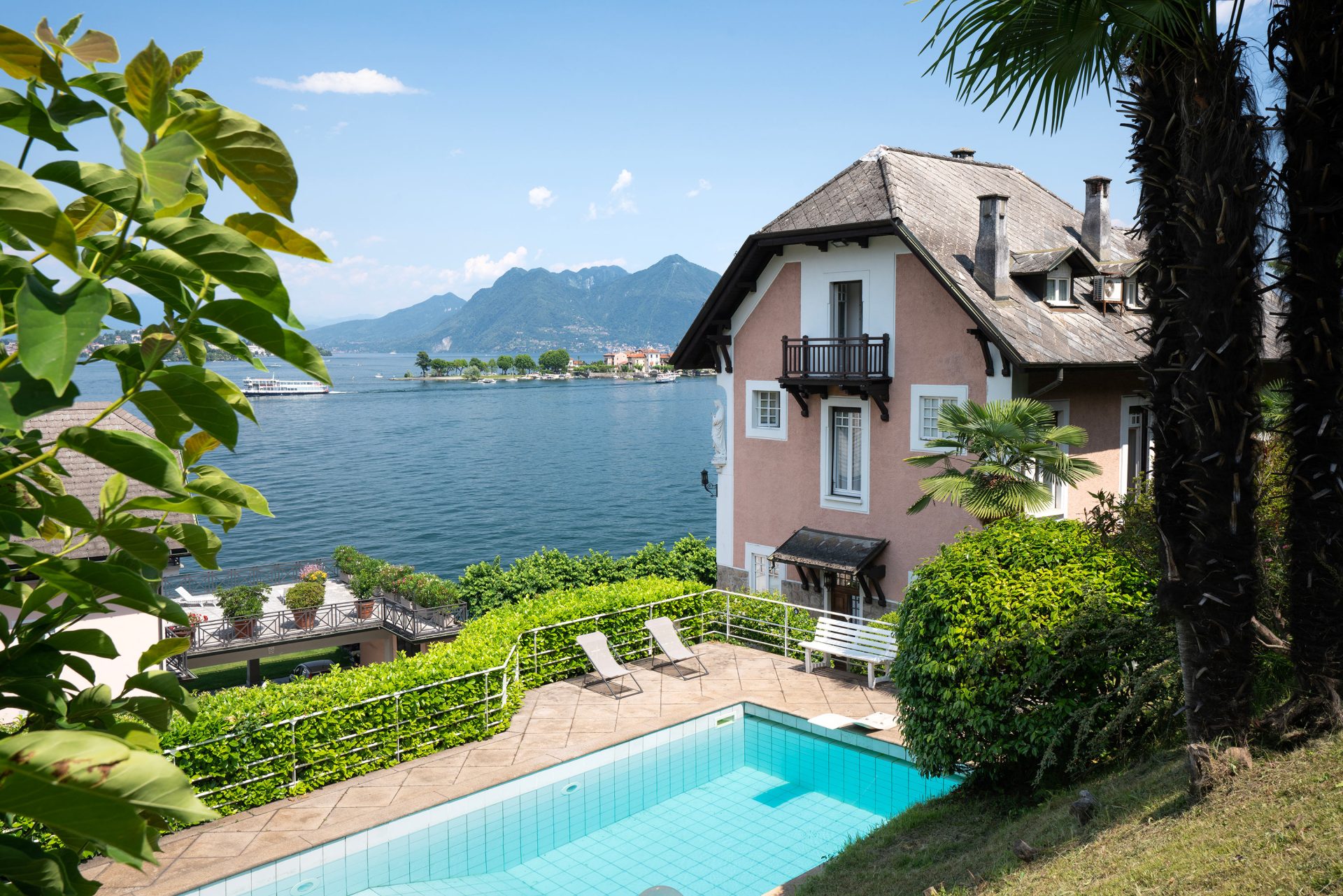 Baveno, a pochi metri a piedi dal centro di Baveno, sulle rive del Lago Maggiore, splendida villa d’epoca edificata nel 1890 fronte lago con parco di 2500 mq, spiaggia privata, piscina e giardino piantumato. Questa esclusiva proprietà, in posizione unica per la vista sulle Isole Borromee, si sviluppa su quattro livelli. Al piano terra troviamo un ampio box, una taverna con bagno. Al primo piano troviamo l’ingresso principale su un luminoso salone di rappresentanza corredato da un bellissimo camino, la sala da pranzo, circondato da un ampio terrazzo di circa 80 mq, da cui si gode dell’incantevole vista sul lago e sulle isole Borromee, la cucina abitabile e bagno di servizio. Ai piani superiori si trovano sei splendide camere, quasi tutte con vista sulle isole Borromee. A completare questa fantastica villa di prestigio, un ampio parco privato curato nei minimi dettagli, che si sviluppa a sbalzi data la conformazione del terreno con una piscina privata.. Esternamente alla strada, un parcheggio per tre auto completa la proprietà, dal quale si accede alla darsena privata ed al molo di attracco con la possibilità di attraccare un motoscafo di medie dimensioni.