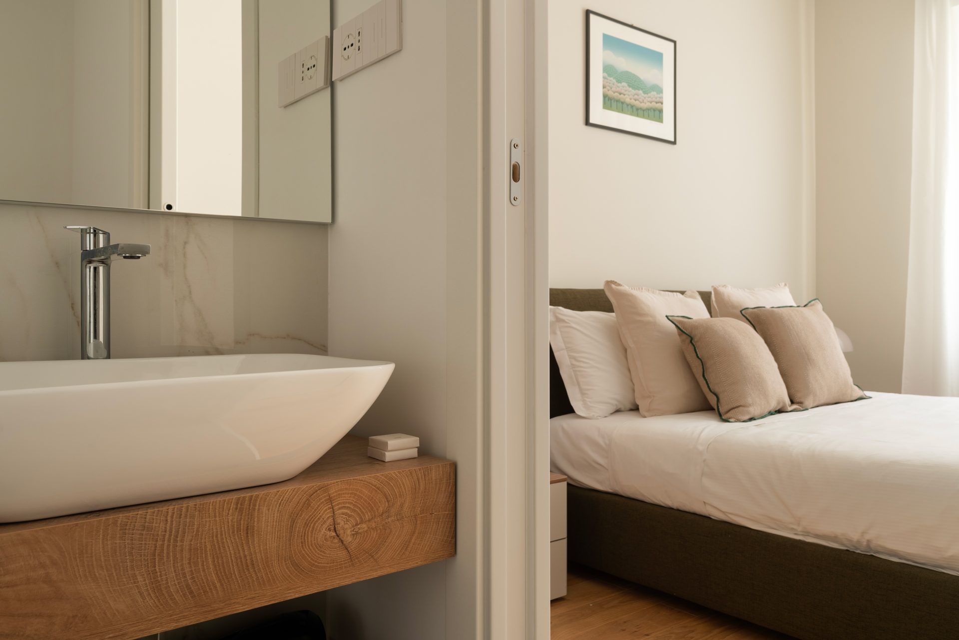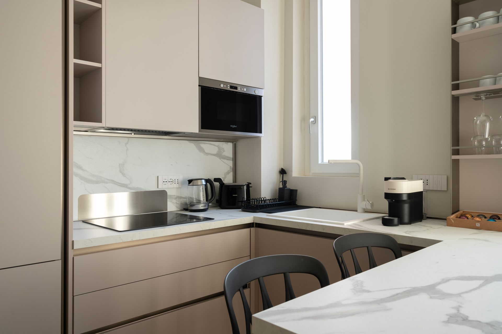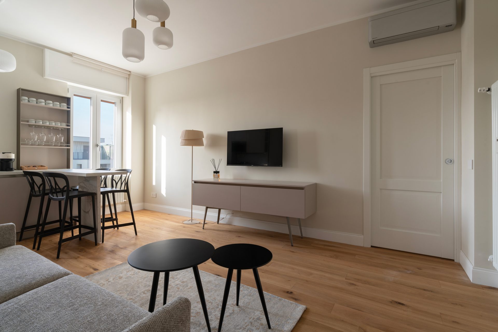 Beautiful three-room attic apartment, completely new. Entrance to the living room with open kitchen. Two bedrooms and two bathrooms, double sofa bed in the living room. Kitchen equipped with all appliances, including Nespresso coffee machine; equipped with all the comforts to feel at home. It is an ideal accommodation for families, friends but also for business trips or friends.
