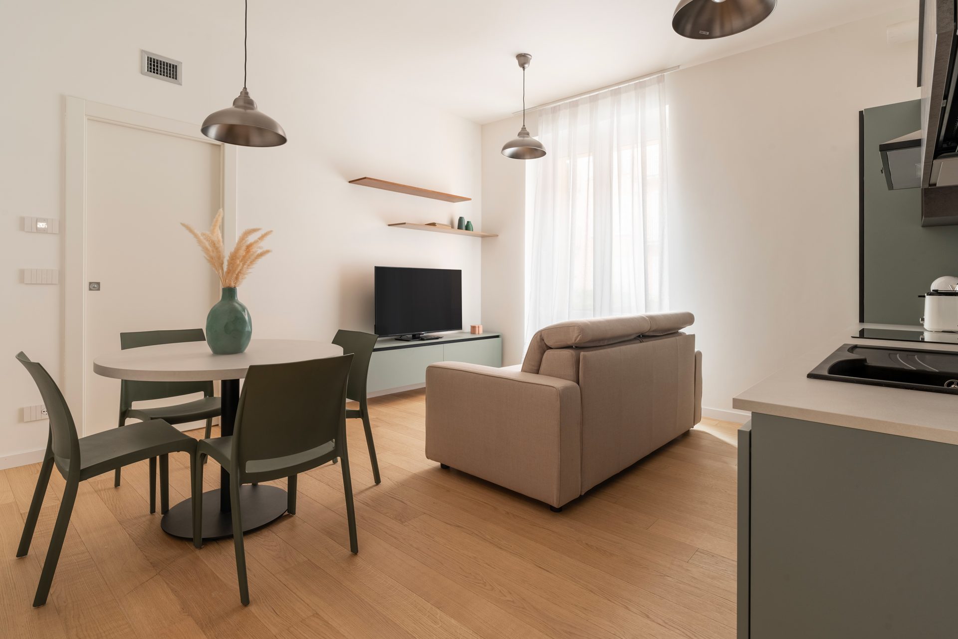 Corso Buenos Aires/Porta Venezia for rent for temporary periods in a residence formula, a splendid furnished two-room apartment in a newly built luxury building, in Via Errico Petrella “Le Corti di Bayres”.